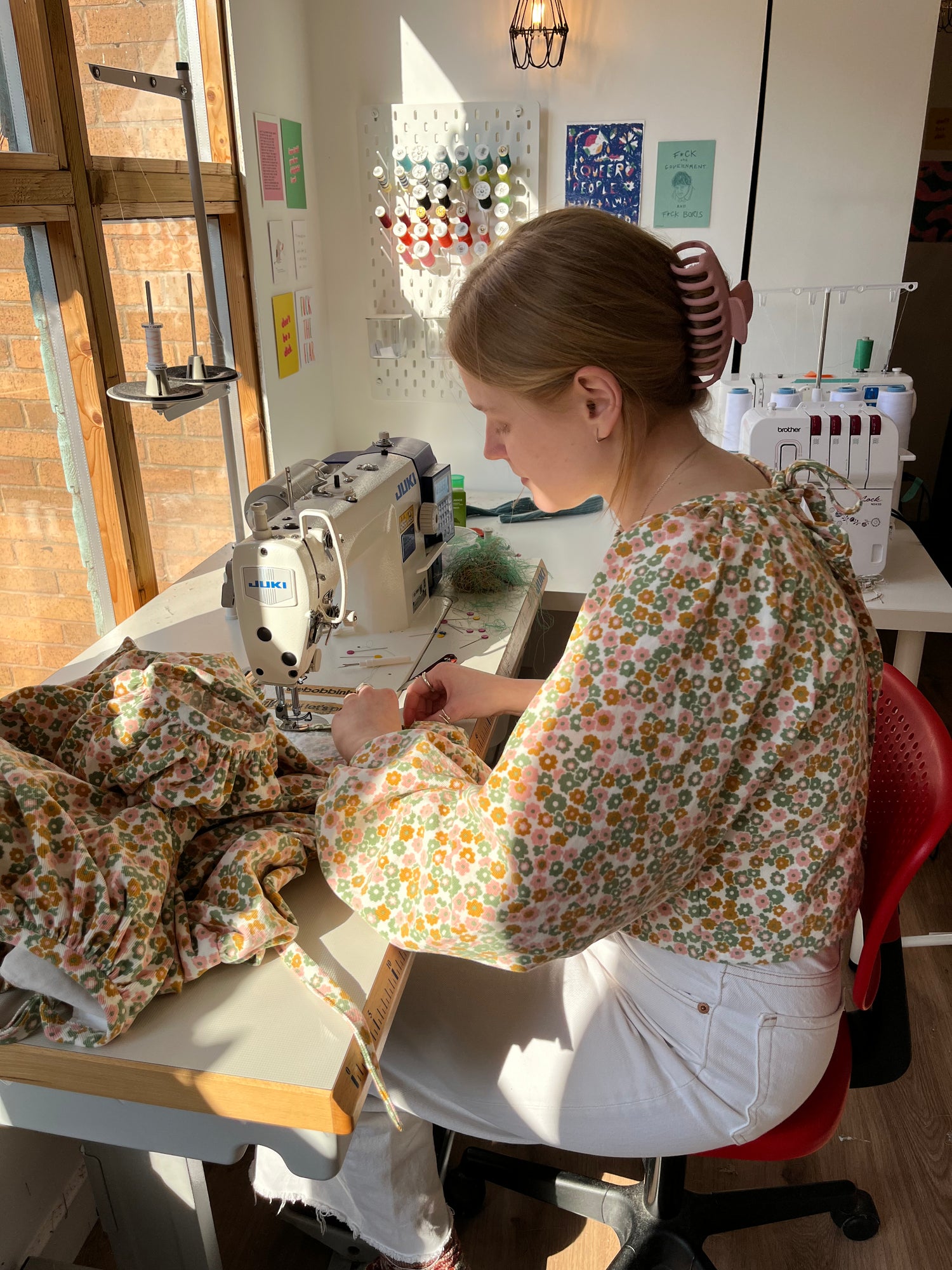 My brand was born in 2019 whilst in my first year at college. It started in the form of an Etsy shop, selling linocut prints and pin badges in my free time. During this time, I taught myself to sew and design fabric for a college project. When I left college early in March 2020, I had every intention of going to uni, but in the summer holidays I launched my first collection of sewn pieces and never really looked back. I went full-time with my business in early 2021 and the rest is history! I've had some amazing experiences along the way, from attending various local markets, creating 200 pieces for a local shop, and even having my pieces stocked in John Lewis as part of the Curated Makers Pop-Up shop in 2022.