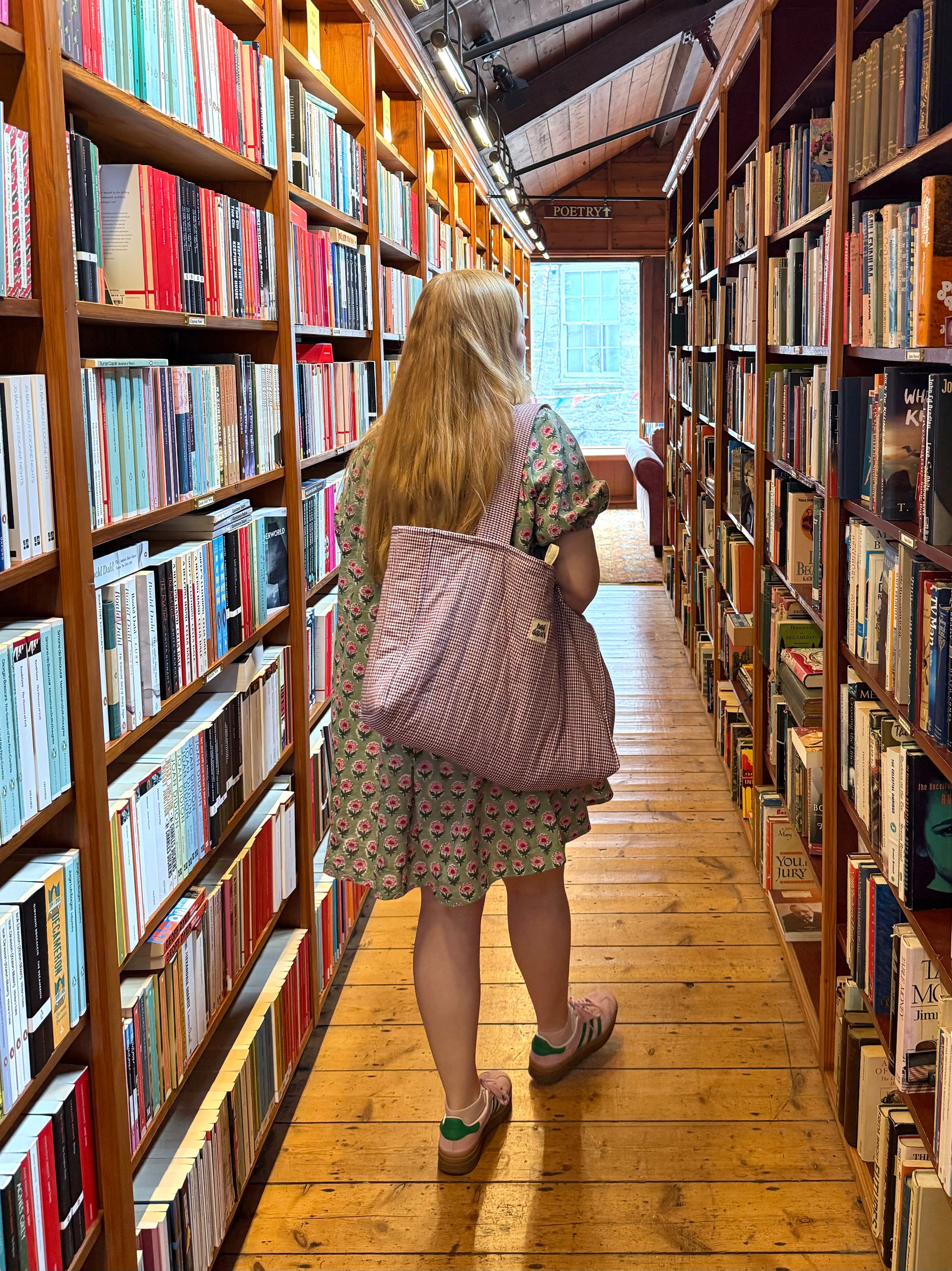 Handmade oversized quilted tote bag, made from beautiful berry gingham 100% cotton fabric.