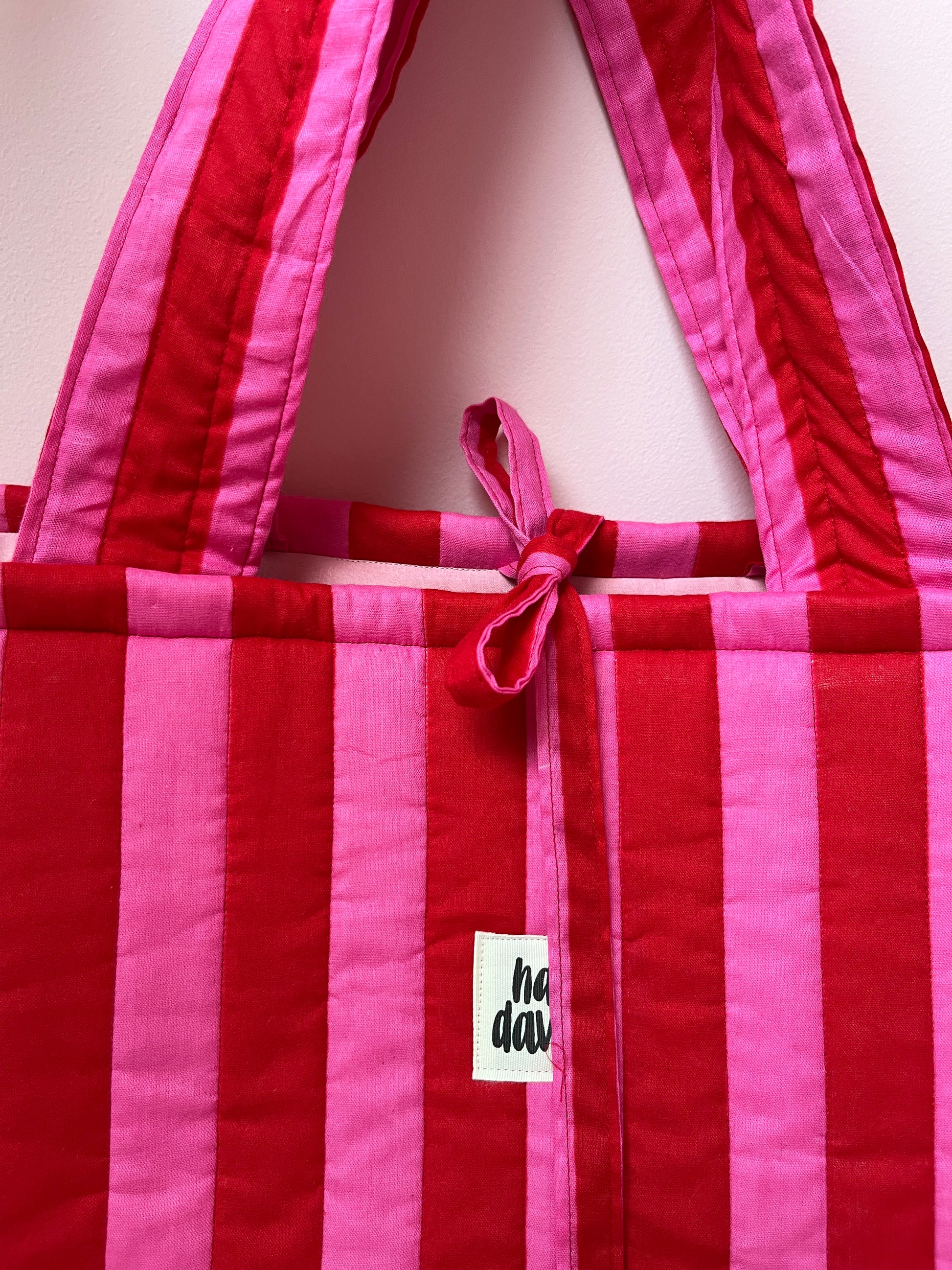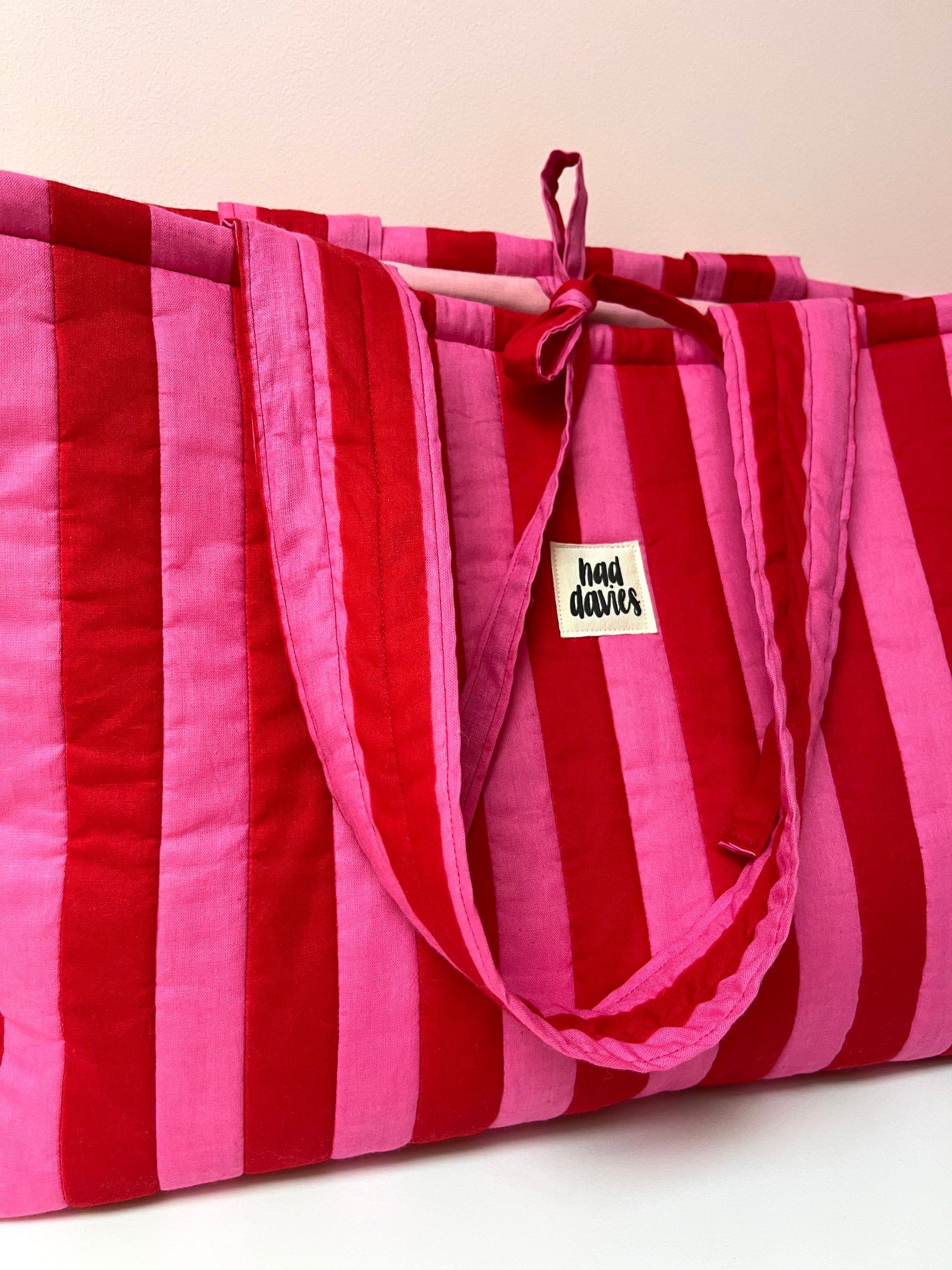 Pink & Red Stripe Oversized Quilted Tote Bag | Limited Edition